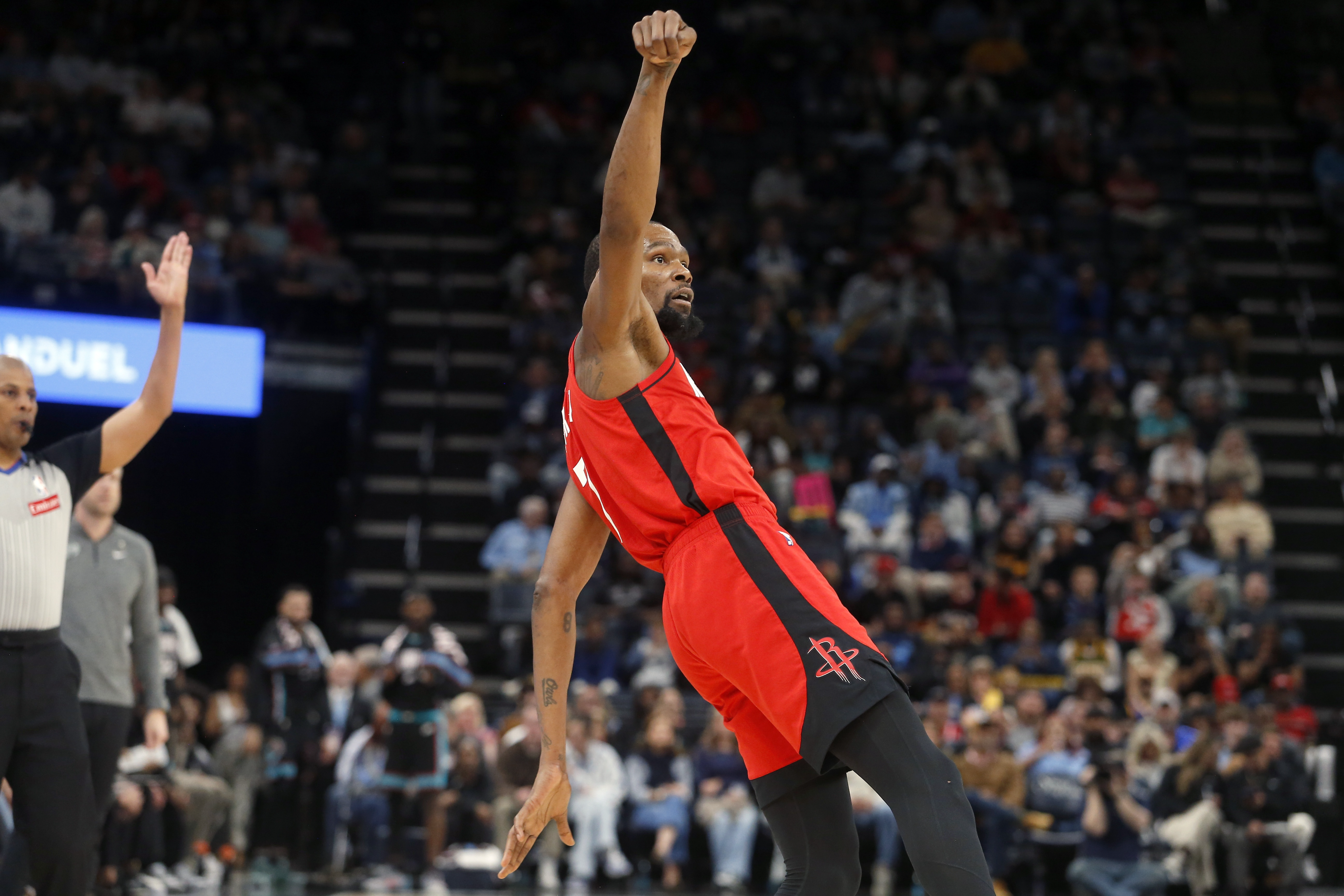 NBA常规赛,火箭主场111-94大胜尼克斯。杜兰特出战34分钟,投篮18中10,三分7中4,罚球4中3,砍下27分6篮板8助攻2盖帽,仅2个失误,正负值+28。